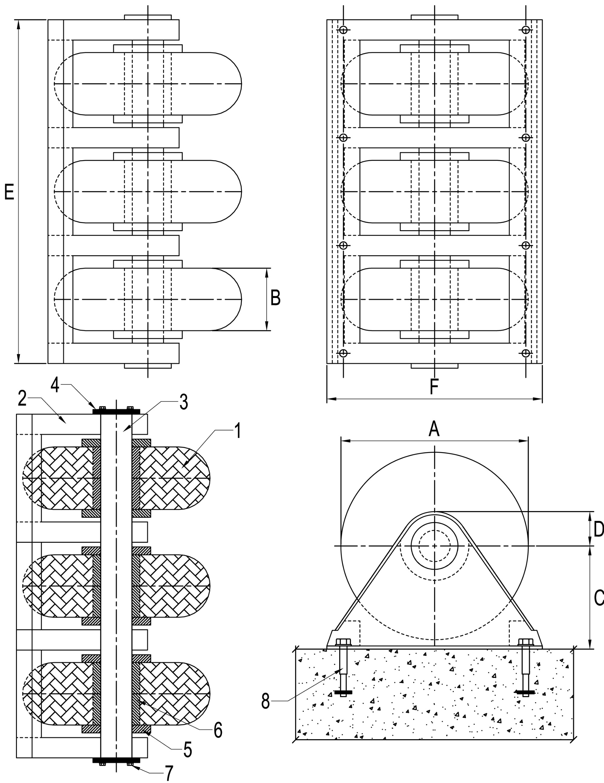 Roller fender is also used to mount on a fixed axis supported by a special frame. It has a sliding shaft with a post latent wheel to absorb as large energy as possible. The roller fender has a fixed axis that makes it very suitable for the pier and the wall of the lock.